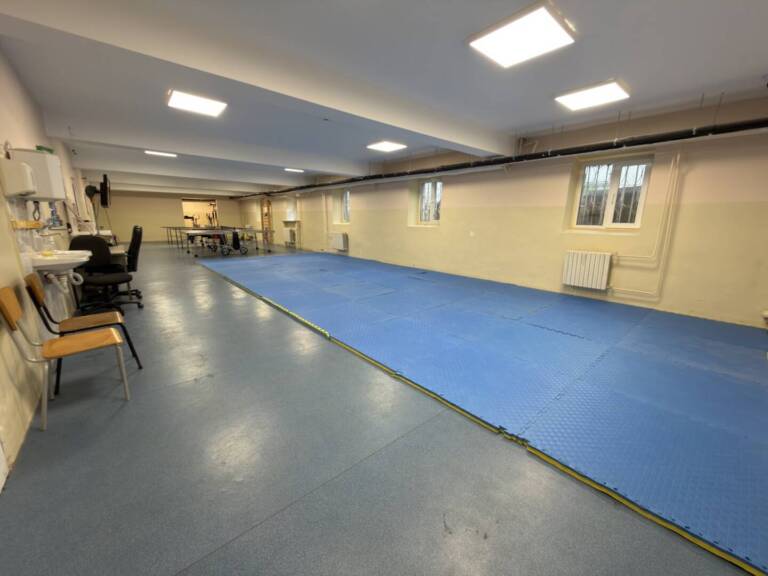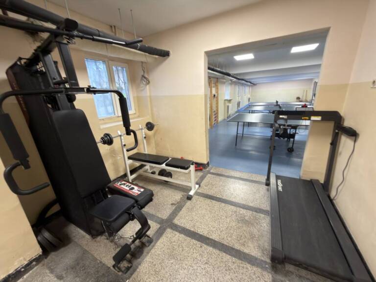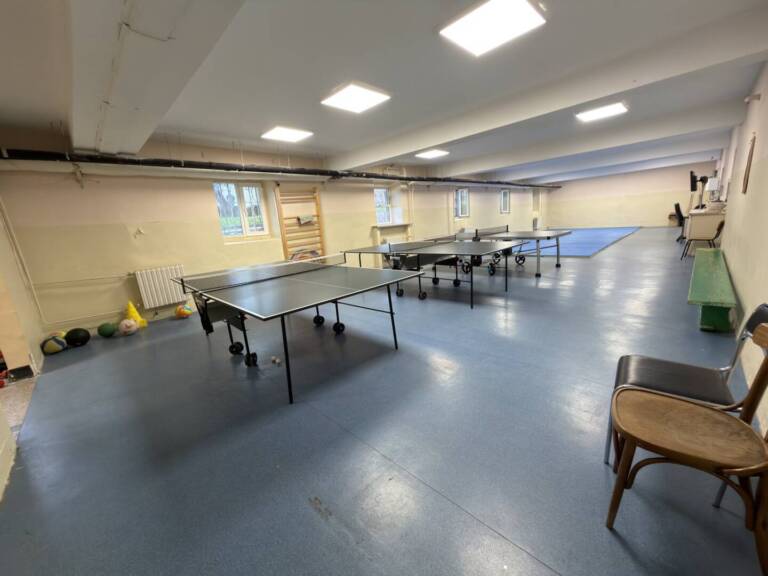 /тенис на маса, гимнастика, фитнес и др./, както и две баскетболни, едно волейболно и футболно игрища на открито. Освен това лекоатлетическа писта и спортни уреди за фитнес на открито.