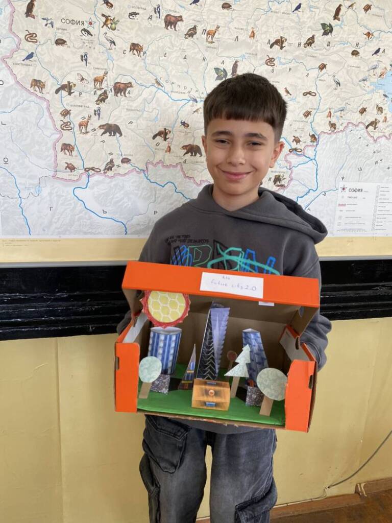 По учебния предмет „Технологии и предприемачество“ ученикът Симеон Калфов създаде впечатляващ макет на „Град на бъдещето“.