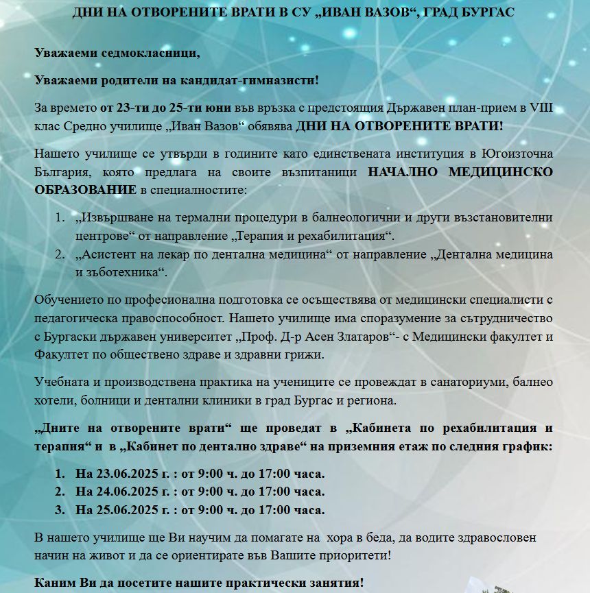 • Copyrught 2025 СУ "Иван Вазов", гр. Бургас