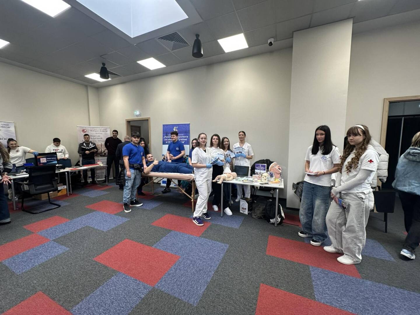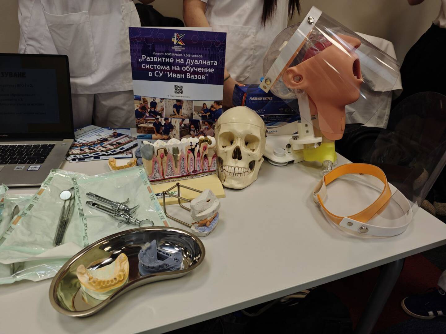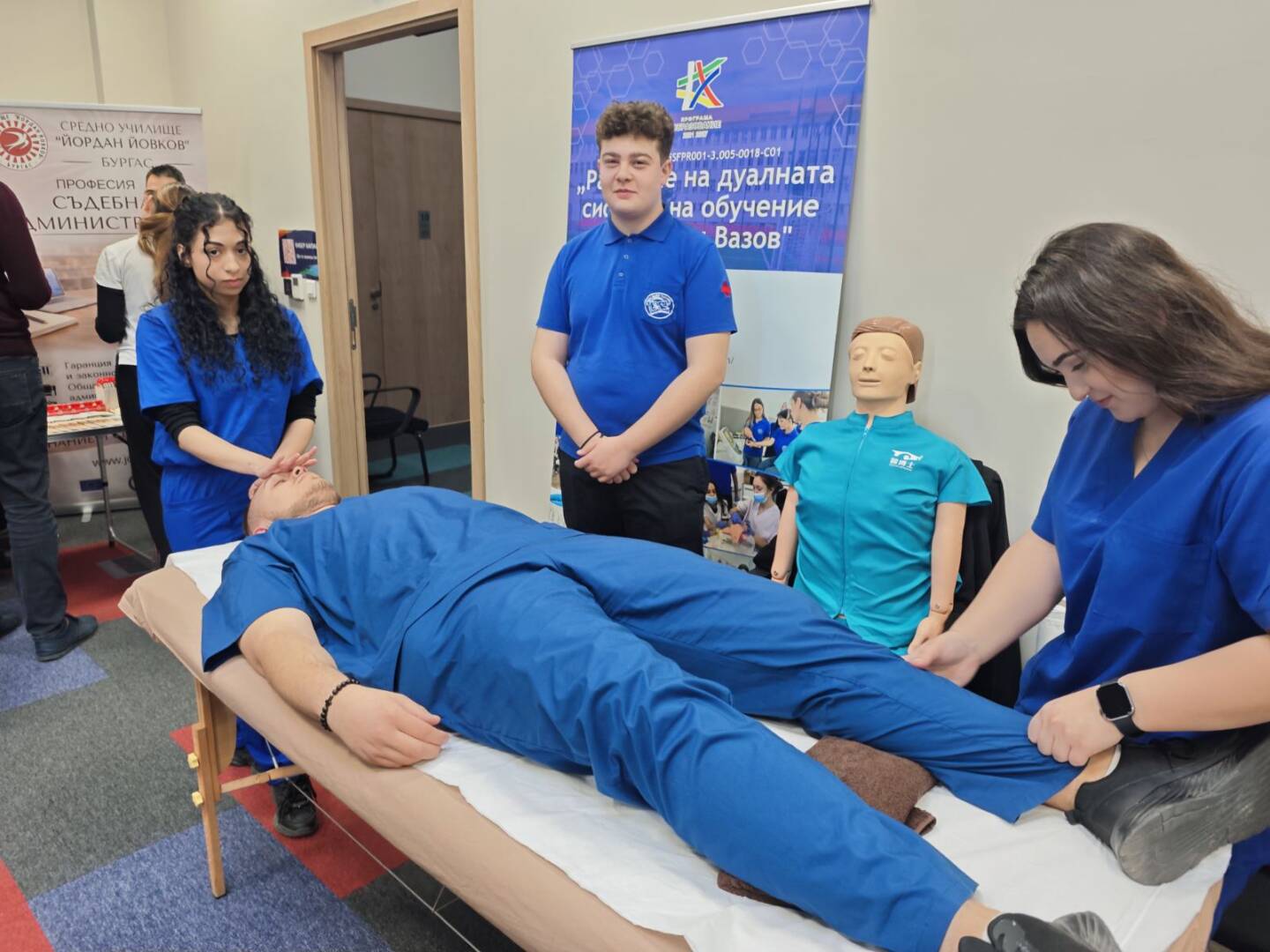 На 14.03.2026 г. ученици от СУ „Иван Вазов“, Бургас активно се включиха в образователния форум “Избирам да уча в България” в Бургас, организиран с подкрепата на Община Бургас. Бъдещите медицински специалисти представиха двете изучавани в училището специалности в дуална форма на обучение: „Асистент на лекар по дентална медицина“ и „Изпълнител на термални процедури в балнеологични и други възстановителни центрове“. По време на форума бе проведена информационна кампания сред родители, ученици и широката общественост с цел повишаване привлекателността на дуалната система на обучение и подпомагане процеса на мотивиране и насочване за включване в дуално ПОО. Кампанията бе част от Дейност 4, Поддейност 2: Провеждане на информационни кампании сред родители, ученици и широката общественост по проект № BG05SFPR001-3.005-0018-C01 Развитие на дуалната система на обучение в СУ „Иван Вазов“ в подкрепа изграждането на нов модел на здравни грижи за деца в ЮИР, финансиран по процедура BG05SFPR001-3.005 Развитие на дуалната система на обучение в ПОО (чрез прилагане на подхода ИТИ), Програма „Образование“ 2021-2027.